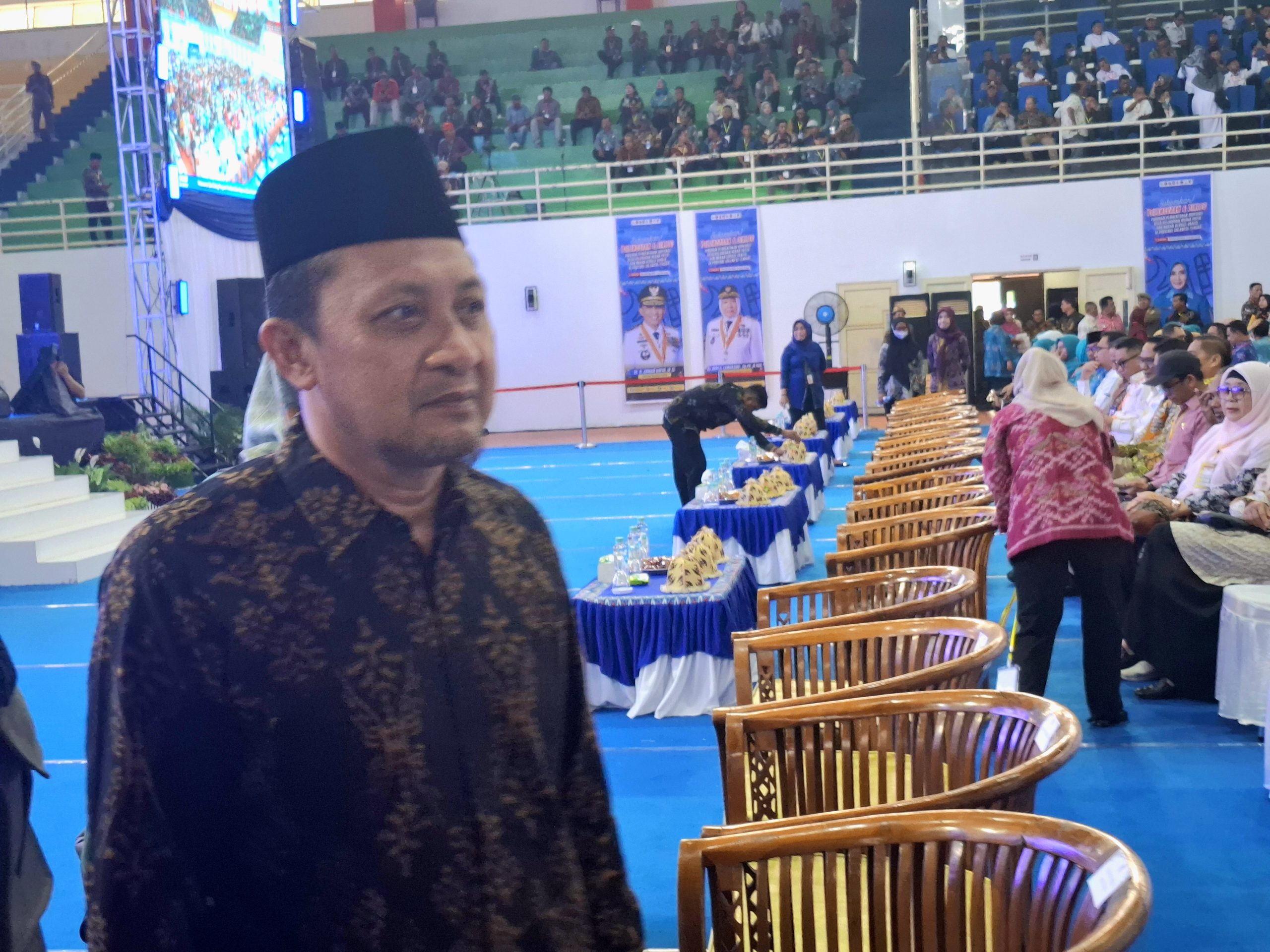 POTRETCELEBES, Palu – Bupati Tojo Una-Una (Touna), Ilham Lawidu, menghadiri kegiatan peluncuran dan dialog pembentukan koperasi desa/kelurahan Merah Putih yang digelar di Gelora Bumi Kaktus (GBK), Kota Palu, Kamis (22/5/2025).