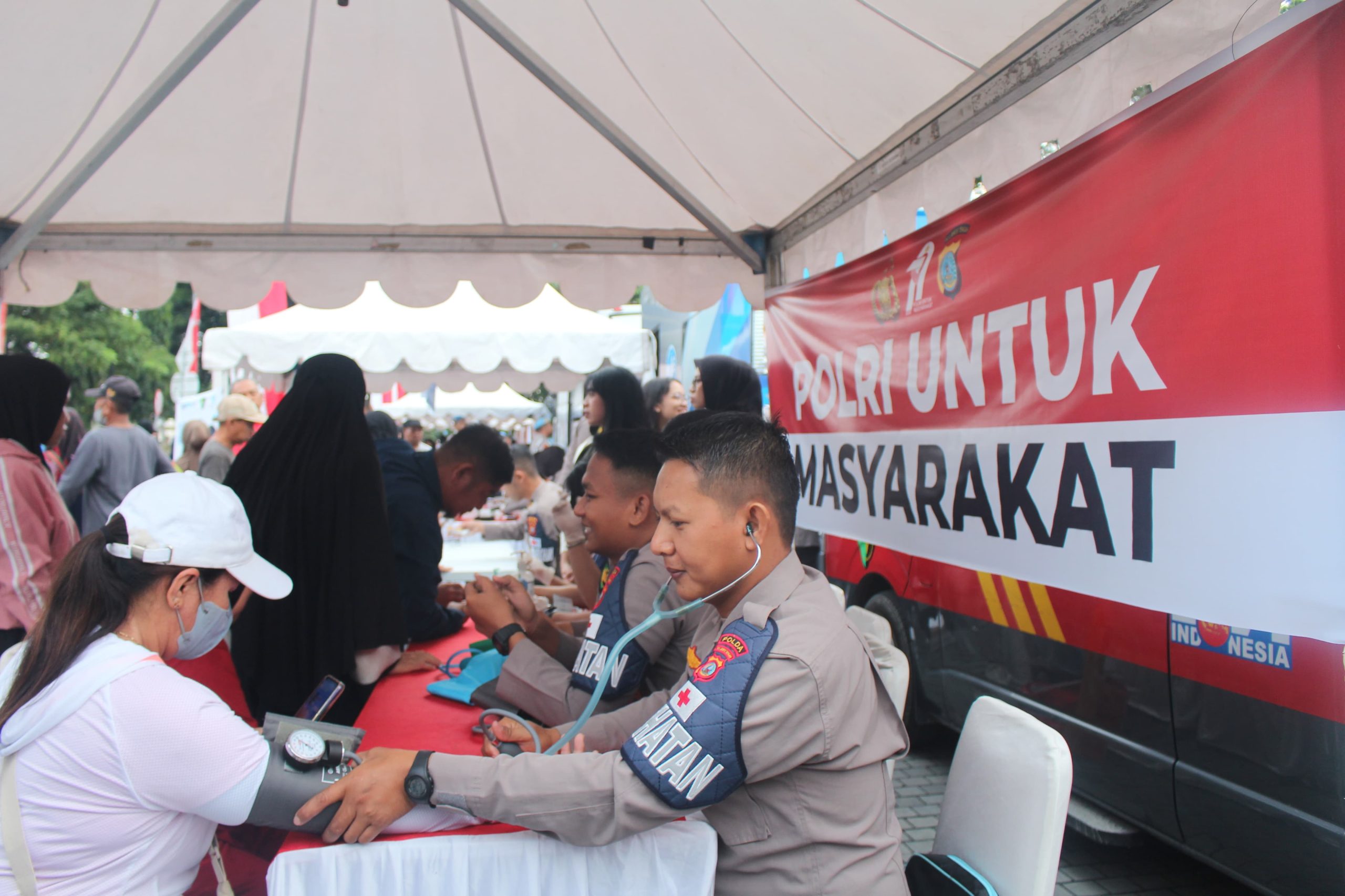 Acara yang dimulai pukul 06.00 WITA ini menarik perhatian masyarakat, khususnya tenda pelayanan kesehatan gratis yang langsung diserbu pengunjung.