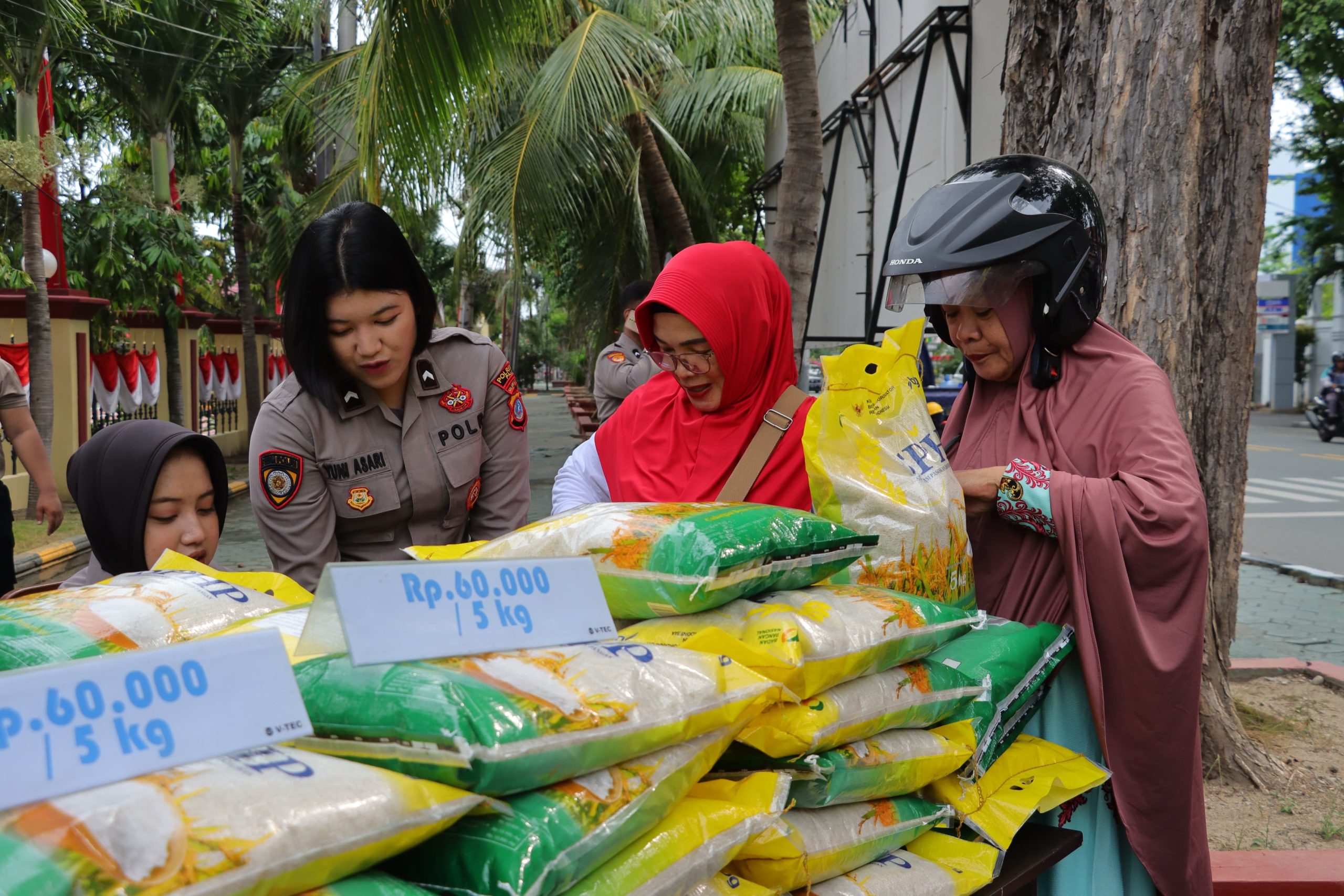 Beras yang dijual dikemas dalam ukuran 5 kilogram dengan harga hanya Rp60.000 per karung, jauh lebih rendah dari harga pasaran. Setiap warga yang datang, berdasarkan KTP, mendapat jatah maksimal dua karung.