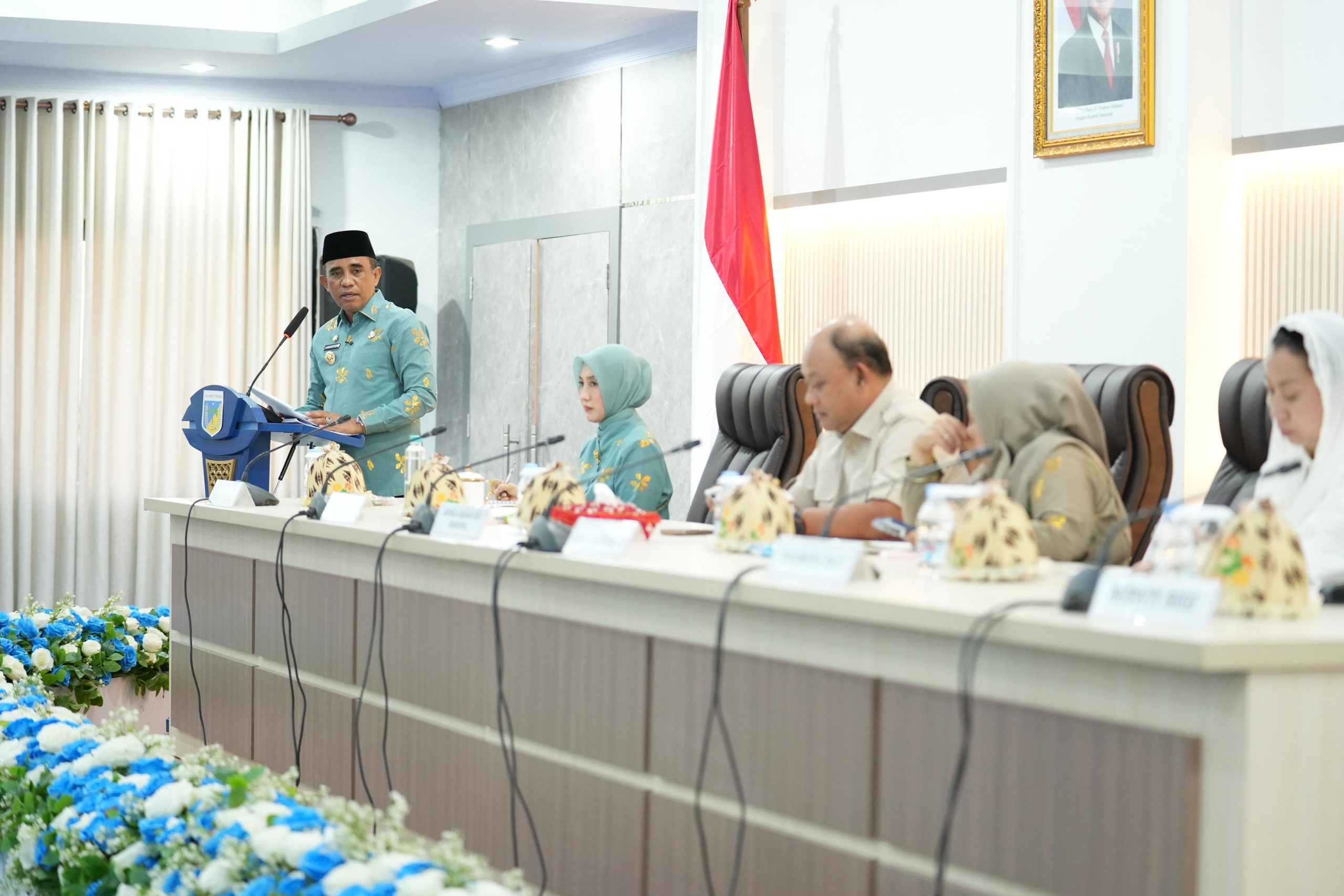 POTRETCELEBES, Palu – Gubernur Sulawesi Tengah Anwar Hafid bersama Wakil Gubernur Reny Lamadjido dan Ketua TP PKK Sri Nirwanti Bahasoan mendampingi Kepala Badan Gizi Nasional (BGN), Dadan Hindayana, dalam kunjungan kerja di Ruang Polibu Kantor Gubernur Sulteng, Kamis (25/9). Sejumlah bupati dan wakil wali kota juga hadir dalam agenda yang membahas implementasi dan dampak ekonomi Program Makan Bergizi Gratis (MBG).