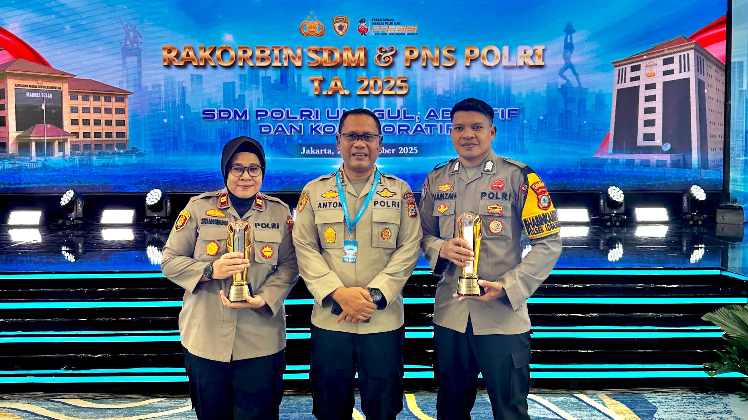 POTRETCELEBES, Palu – Prestasi membanggakan kembali ditorehkan jajaran Polda Sulawesi Tengah. Dua personel terbaiknya berhasil meraih penghargaan nasional dalam ajang Hoegeng Corner yang digelar pada kegiatan Rapat Koordinasi Pembinaan (Rakorbin) SDM Polri di Hotel Mercure Ancol, Jakarta, Rabu (29/10/2025).