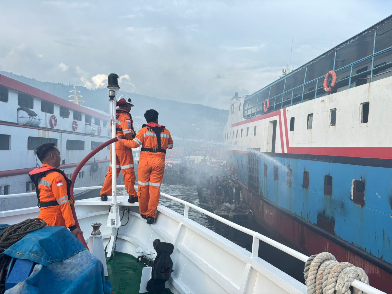 Pada pukul 17.00 Wita, Tim Rescue Pos SAR Luwuk bersama ABK KN SAR Bhisma dan unsur potensi SAR tiba di lokasi kebakaran dan langsung melakukan pemadaman api. Upaya evakuasi berhasil dilakukan pukul 17.30 Wita, dengan total 9 ABK dievakuasi dalam kondisi selamat. Seluruh korban dibawa ke puskesmas terdekat untuk mendapatkan penanganan medis, dengan satu korban mengalami luka pada bagian kaki.