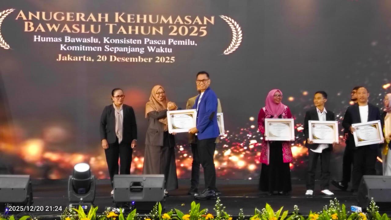 Penghargaan tersebut diserahkan dalam rangkaian Rapat Koordinasi Nasional Evaluasi Pengawasan Pemutakhiran Data Pemilih Berkelanjutan dan Hubungan Kerja Sama Antar Lembaga Tahun 2025, yang berlangsung di Hotel Grand Sahid, Jakarta. Sabtu (20/12/2025).