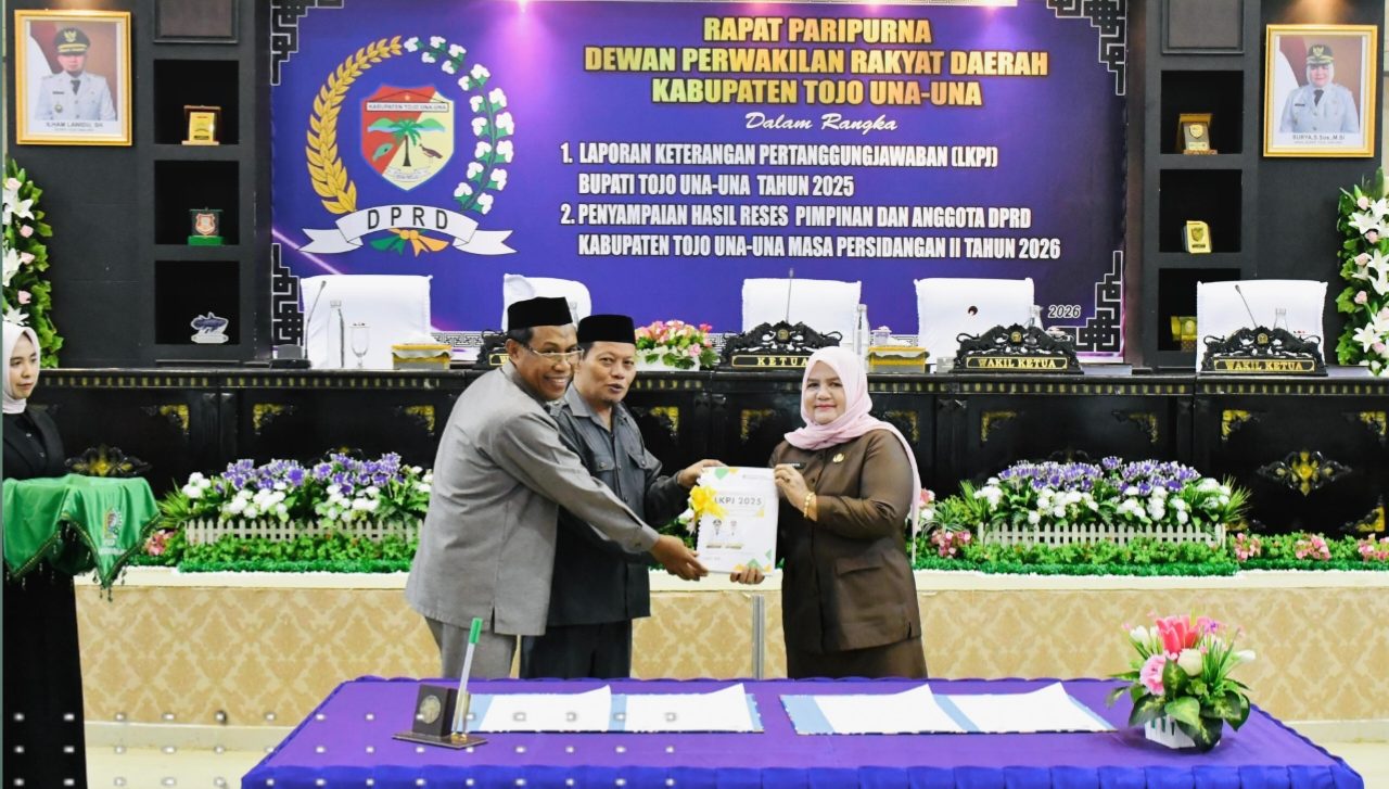 Rapat yang digelar di lingkungan Dewan Perwakilan Rakyat Daerah Kabupaten Tojo Una-Una tersebut mengagendakan dua pembahasan utama, yakni penyampaian Laporan Keterangan Pertanggungjawaban (LKPJ) Bupati Tahun Anggaran 2025 serta laporan hasil reses pimpinan dan anggota DPRD masa persidangan II Tahun 2026.