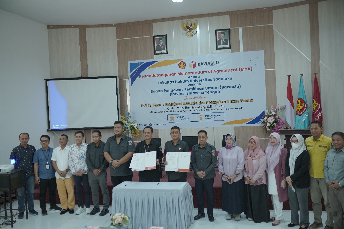 POTRETCELEBES, Palu – Fakultas Hukum Universitas Tadulako (FH Untad) bersama Badan Pengawas Pemilihan Umum Provinsi Sulawesi Tengah (Bawaslu Sulteng) resmi memperkuat sinergi kelembagaan melalui penandatanganan Memorandum of Agreement (MoA) yang dirangkaikan dengan kuliah tamu bertema “Eksistensi Bawaslu dan Penegakan Hukum Pemilu”, Selasa (21/4/2026).